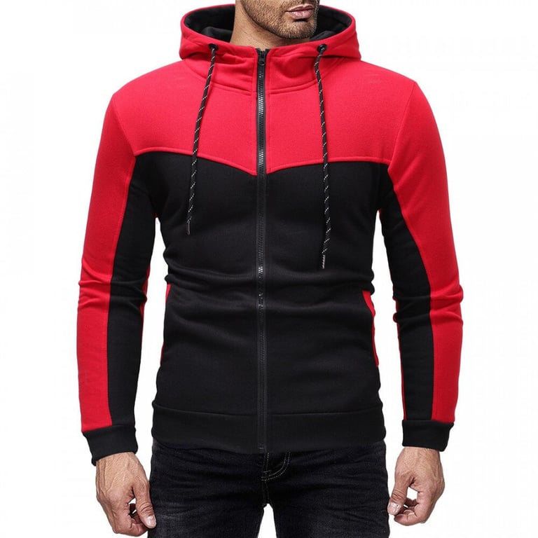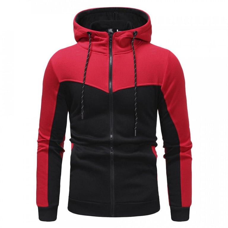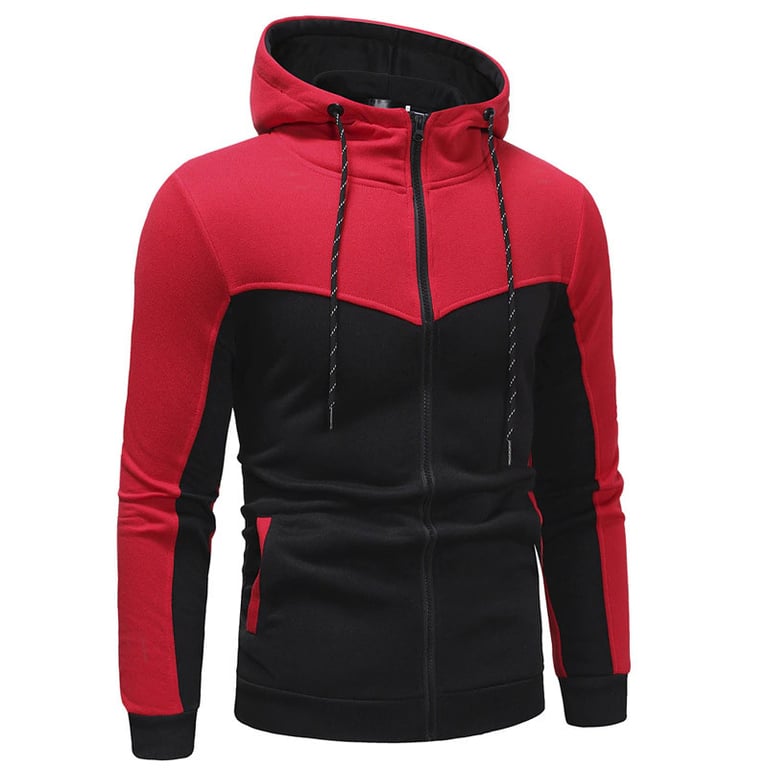 Men's sweatshirt with long sleeves. The sweatshirt features a hood with drawstrings and a zip fastening. Two side pockets. Combination of two colours. Available in multiple variants.