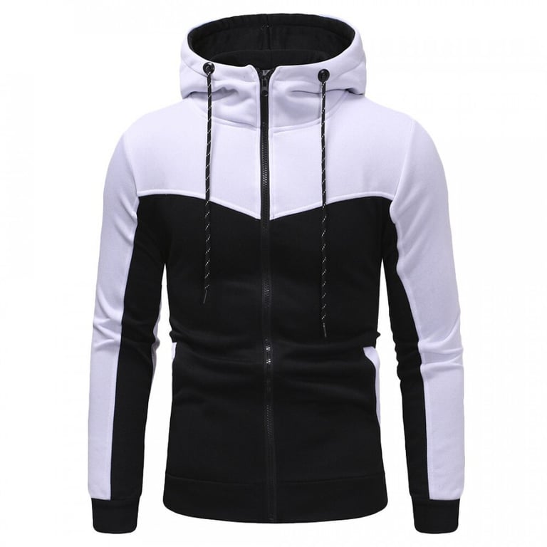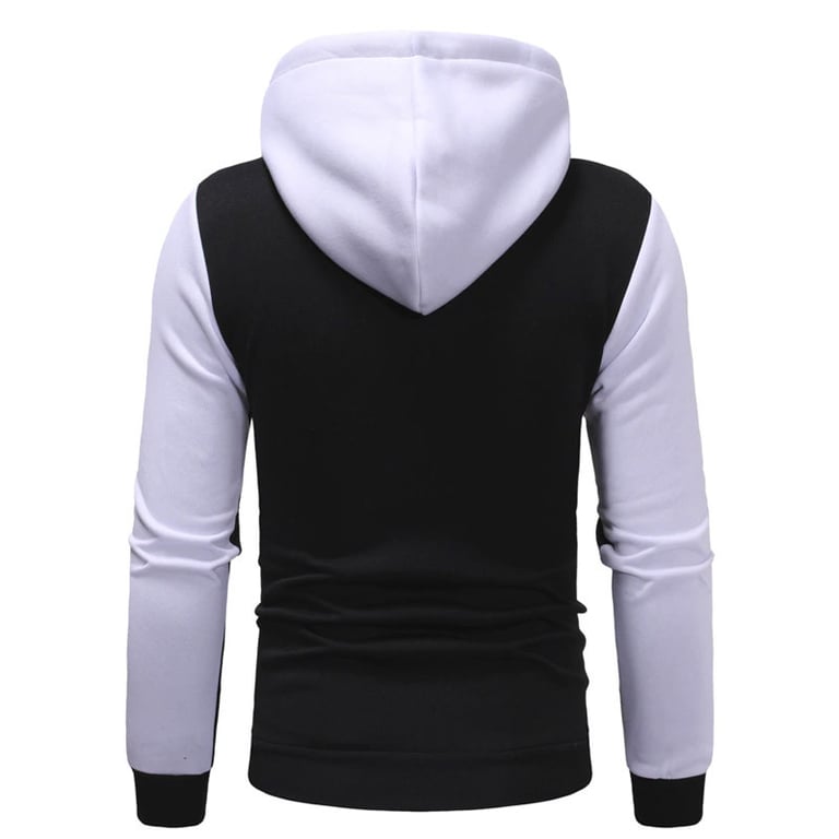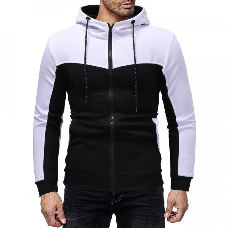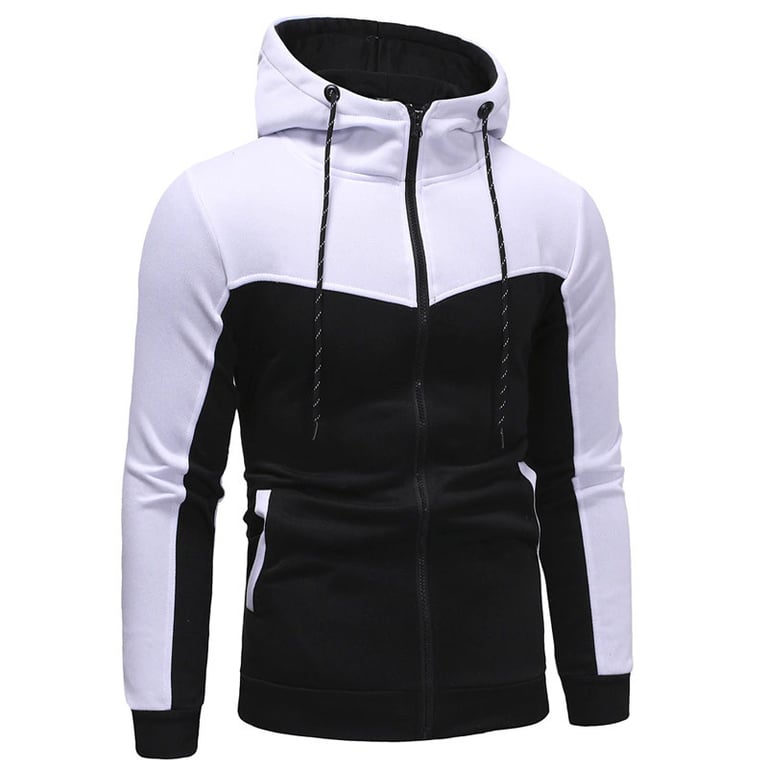 Men's sweatshirt with long sleeves. The sweatshirt features a hood with drawstrings and a zip fastening. Two side pockets. A combination of two colours. Available in multiple variants.