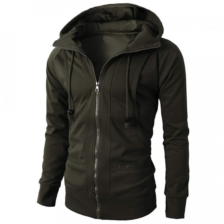 Men's sweatshirt with a collar and hood. Fitted cut. Long sleeves. Side pockets. Available in multiple colour options.