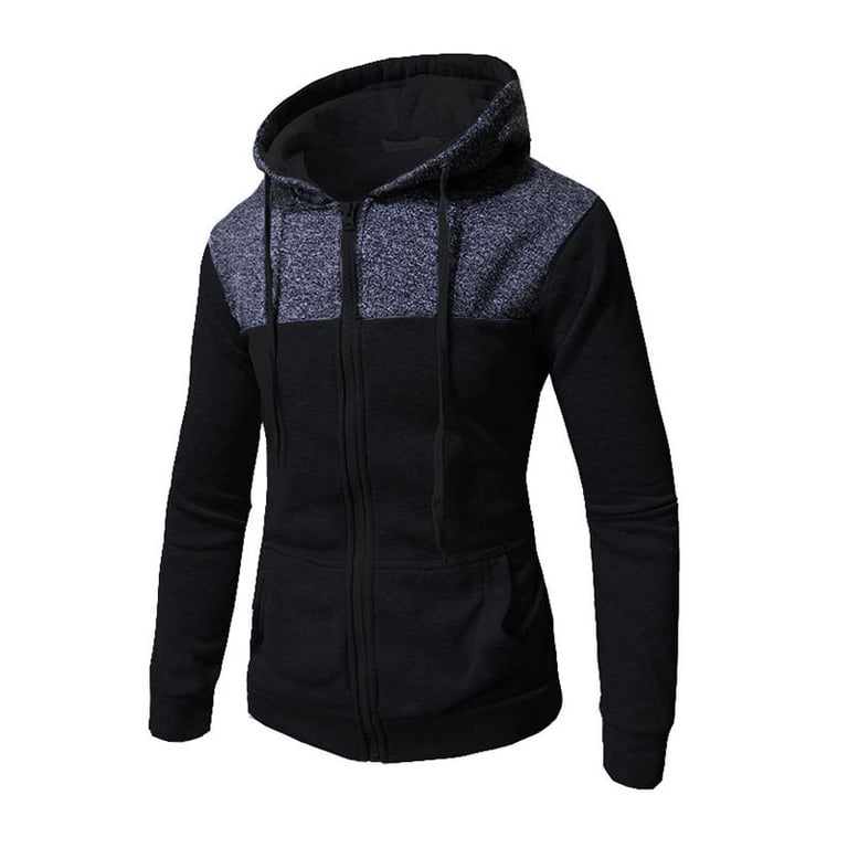 A hoodie for men that is in a sporty style. The hood can be tightened with a drawstring.