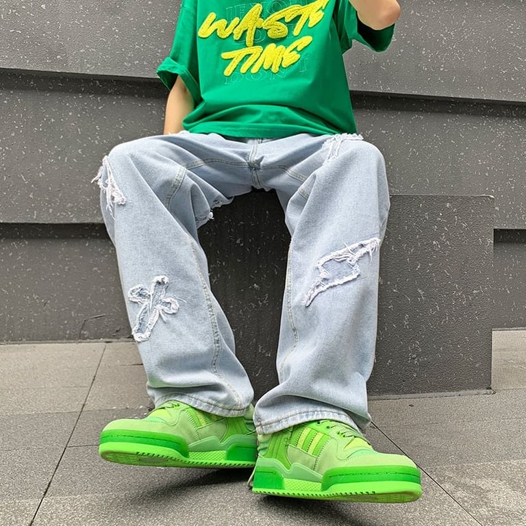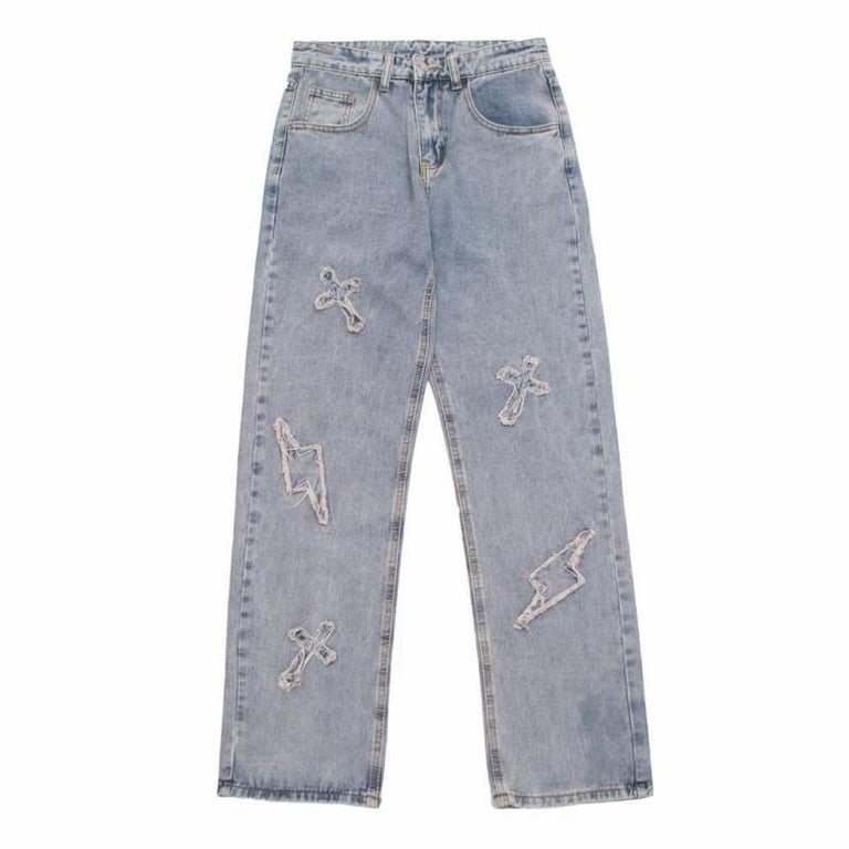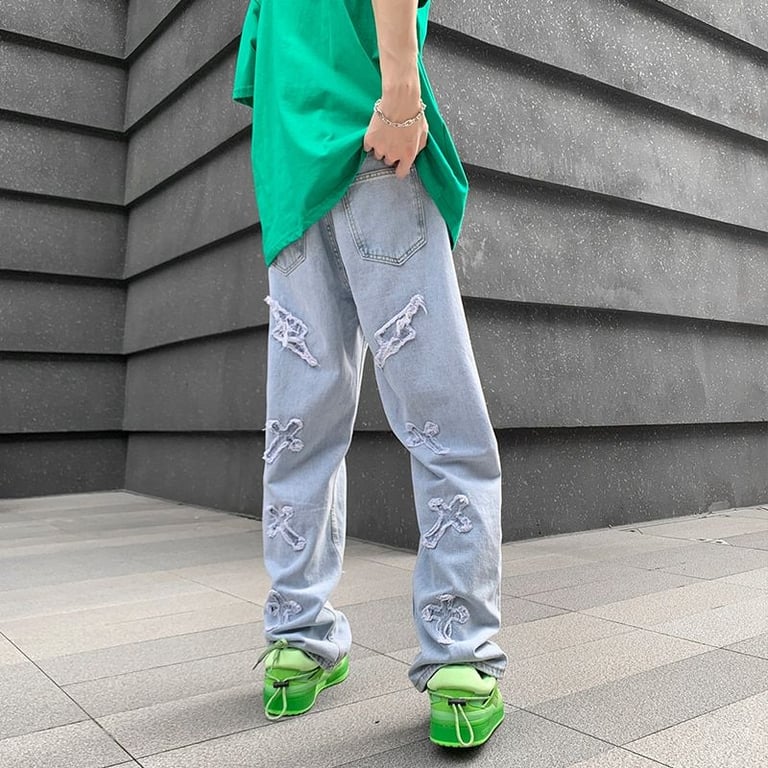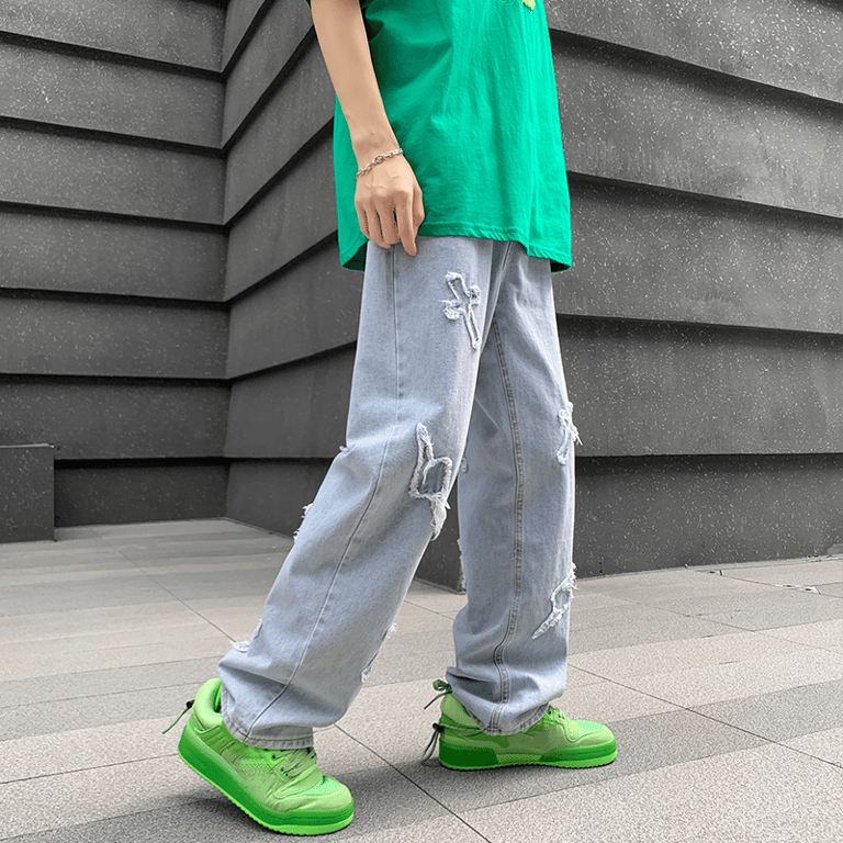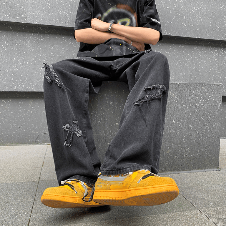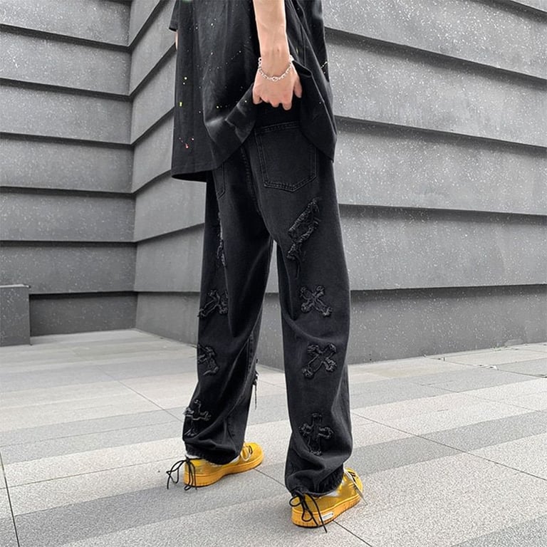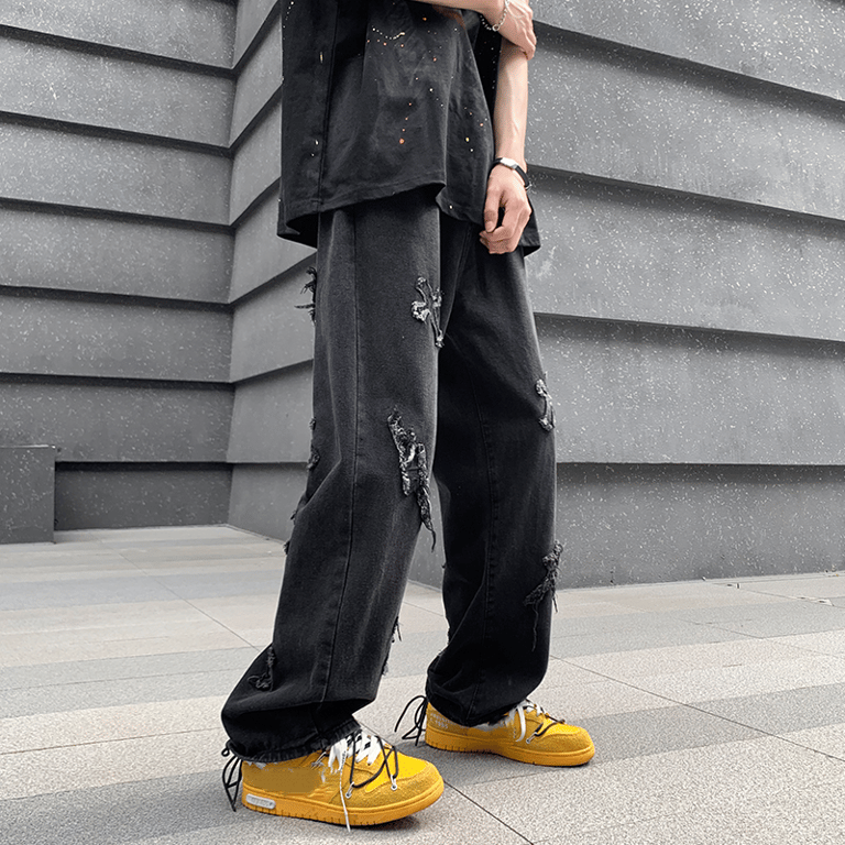 Stylish men's trousers with ripped patches.