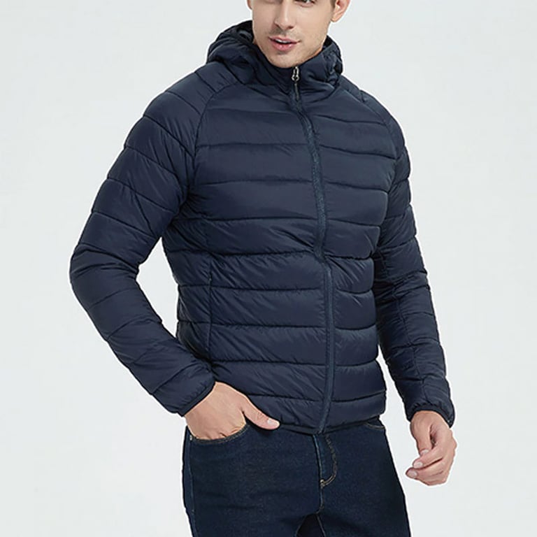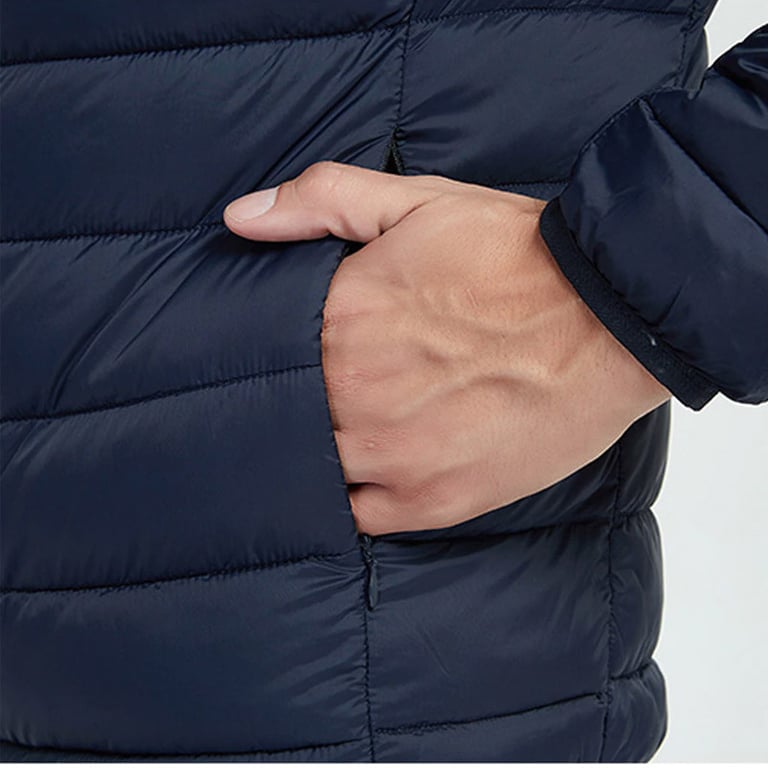 Men's padded jacket with quilting. Lightweight. With a hood and zip fastening. Side pockets. Available in multiple colour options.
