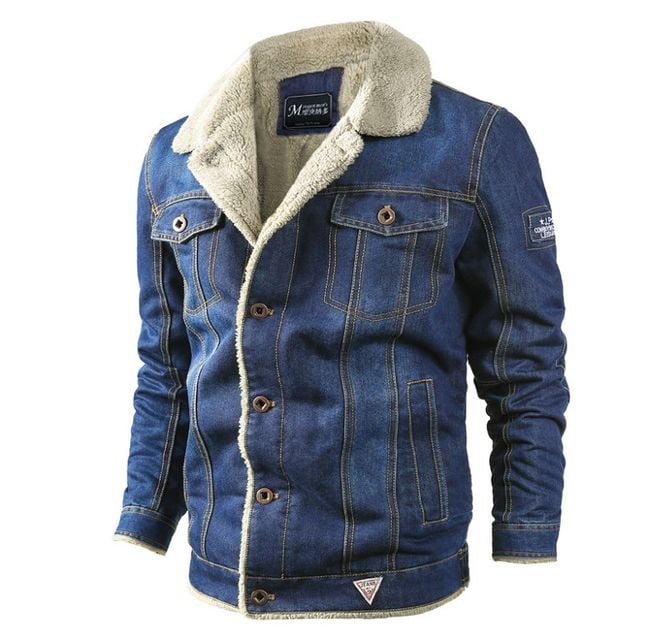 Stylish denim jacket with fur for men available in 2 colour variants.