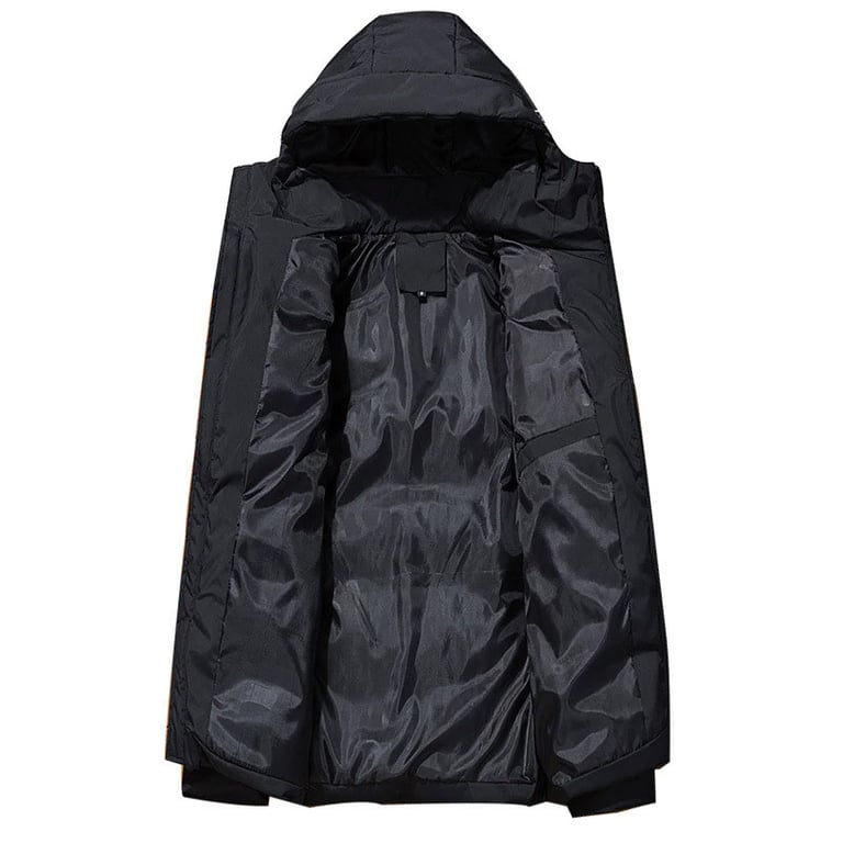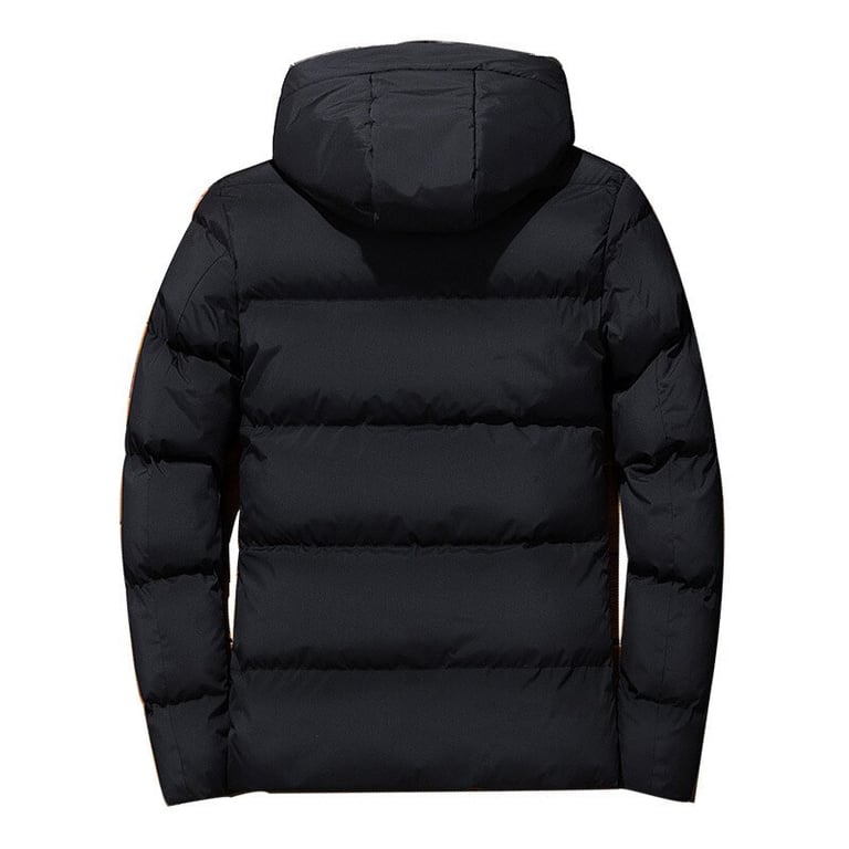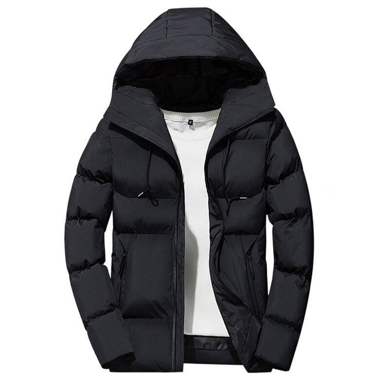 Men's padded jacket with a hood and collar. The jacket features a zip fastening and two side pockets with zips. Available in multiple colour options.