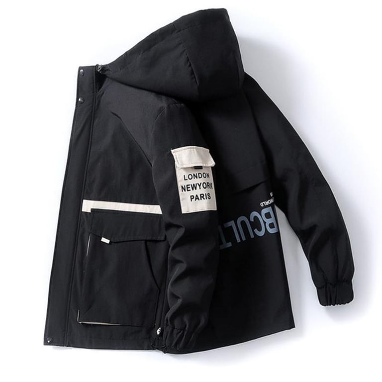 • Tags: men's jacket, trendy print, hood, spring, pockets