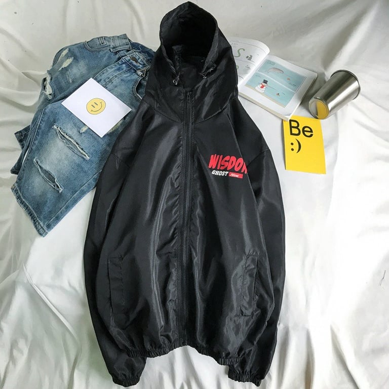 This jacket is very comfortable and features a ghost Winston print.