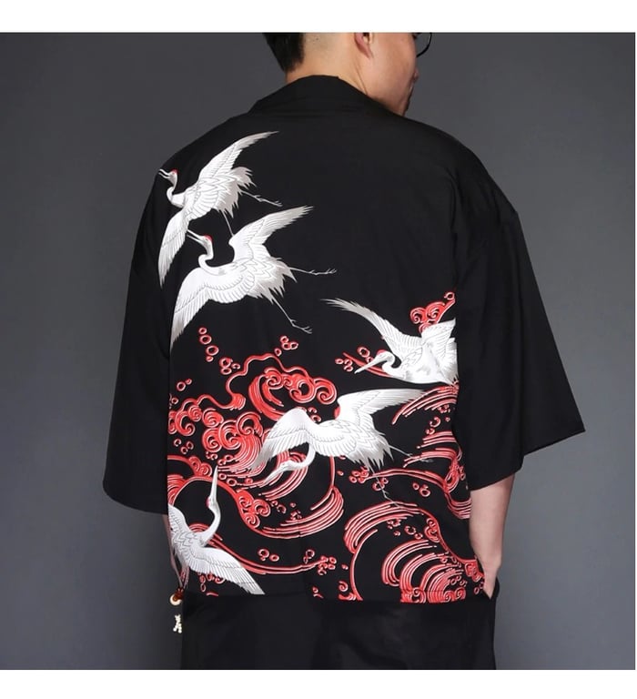 Dress in this lightweight jacket with heron print.