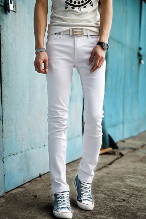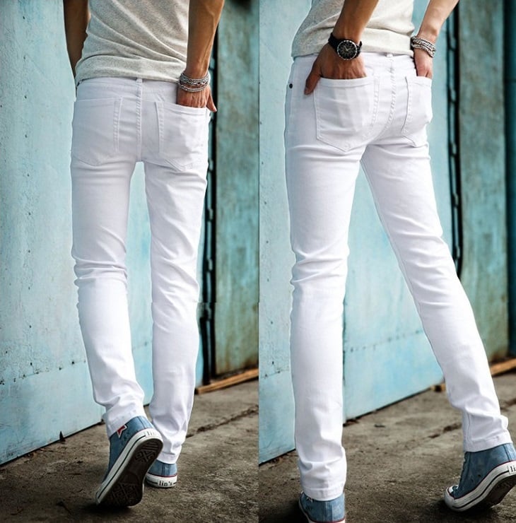 Beautiful men's slim-fit jeans for everyday wear in white.