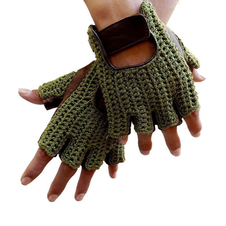 Men's fingerless gloves in an unconventional design.