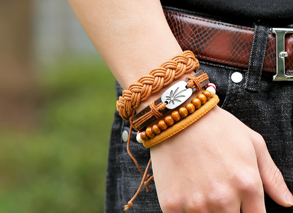 Luxury set of men's leather bracelets that stylishly complement any outfit.
