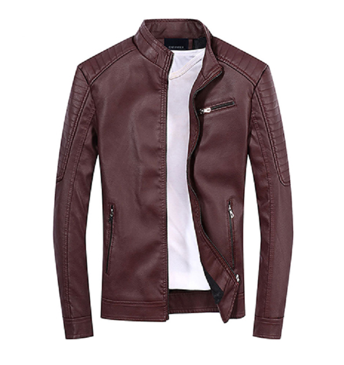 Be stylish with this leather jacket, which has a warm lining inside.