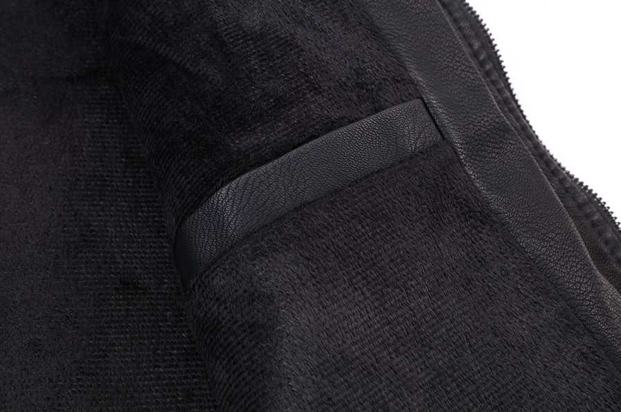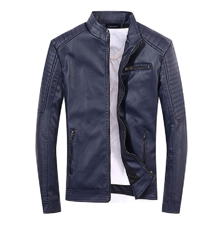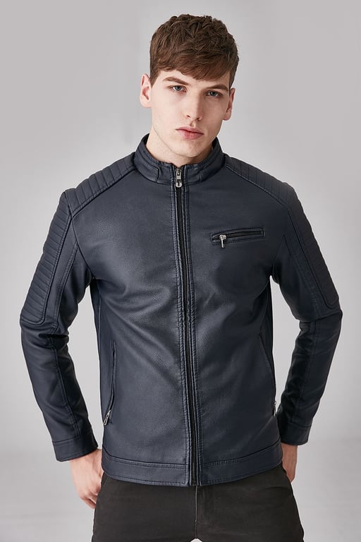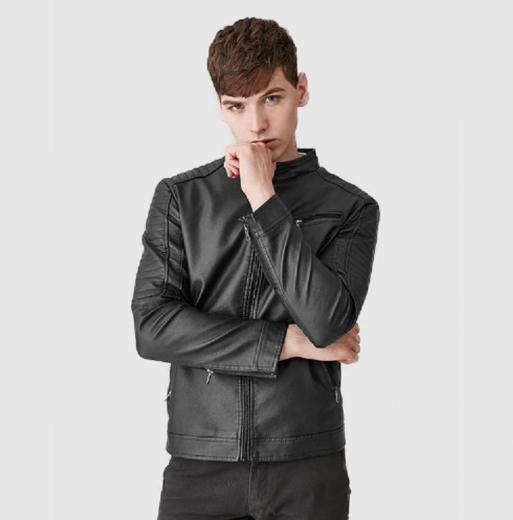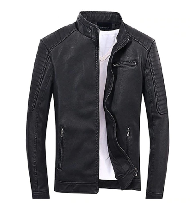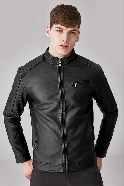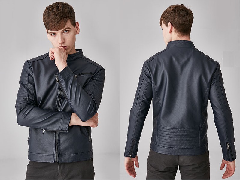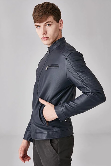 Be stylish with this leather jacket, which has a warm lining inside.