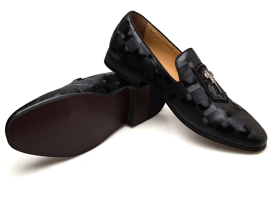 The loafers are made from high-quality material and are adorned with an elephant head.