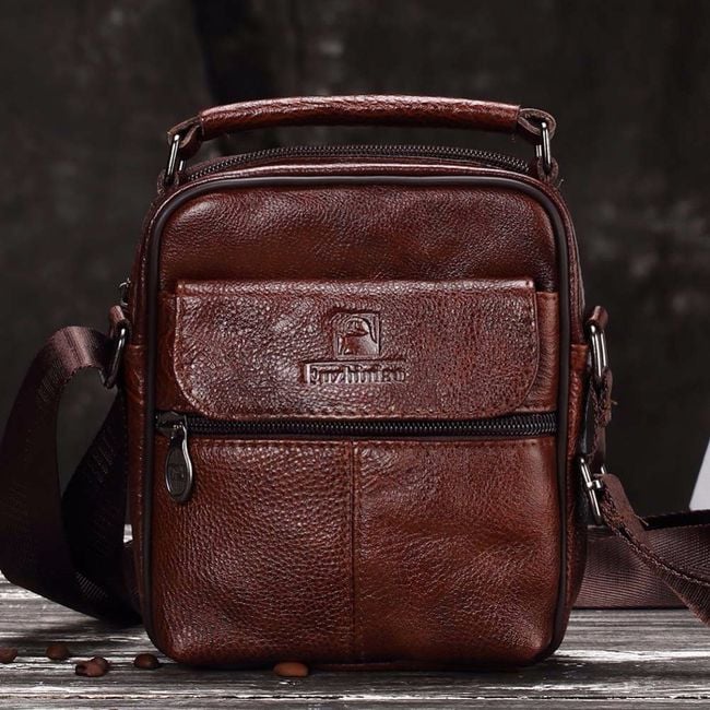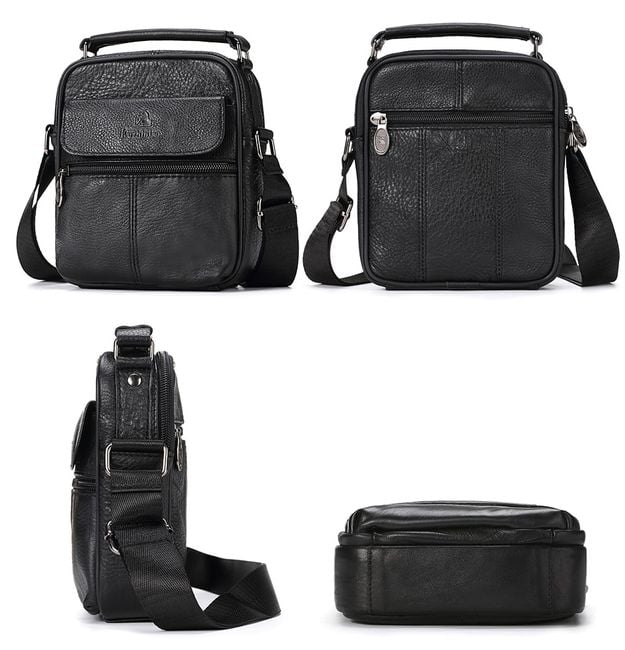 Men's leather shoulder bag - black