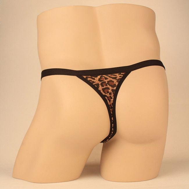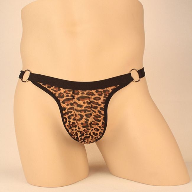 Men's thong with a leopard pattern.