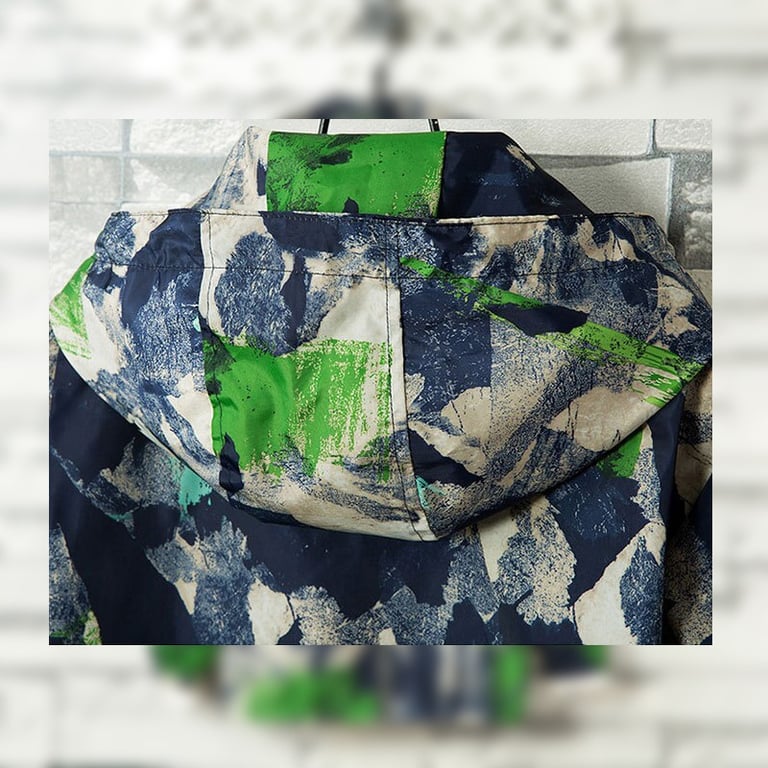 Comfortable men's jacket with a modern print for both younger and older generations. The cut is classic and it features a hood.