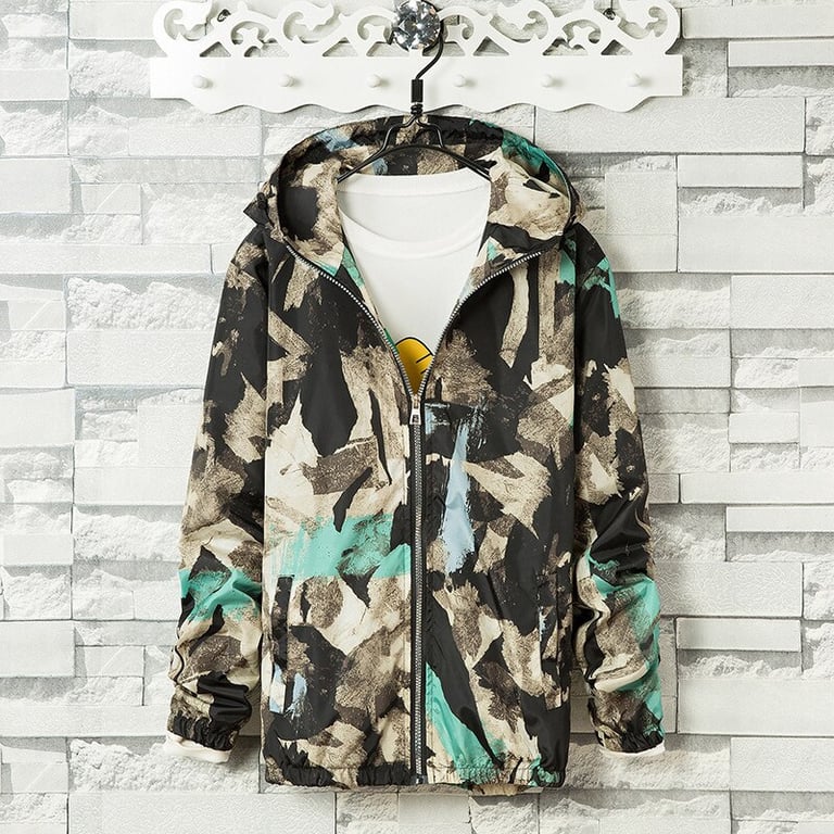 Comfortable men's jacket with a modern print for both younger and older generations. The cut is classic and it features a hood.