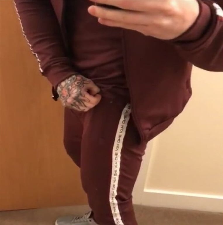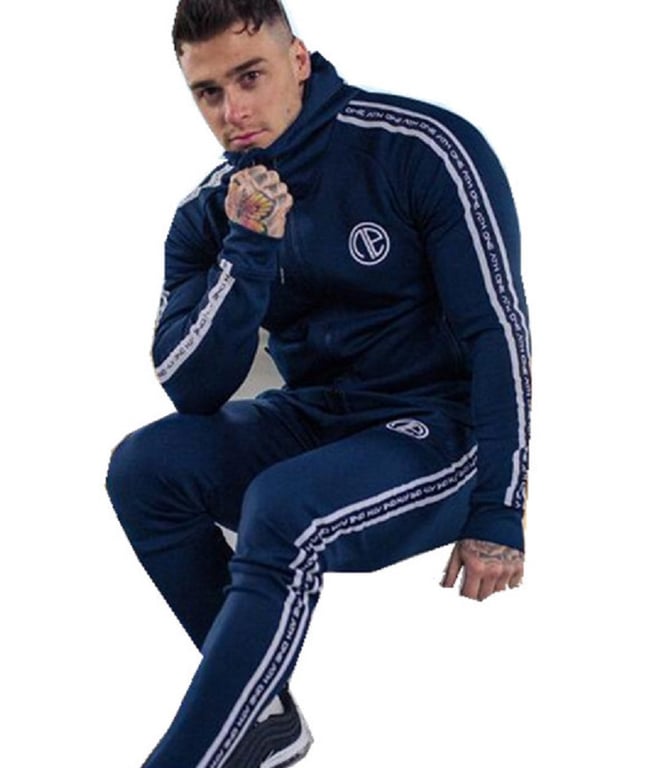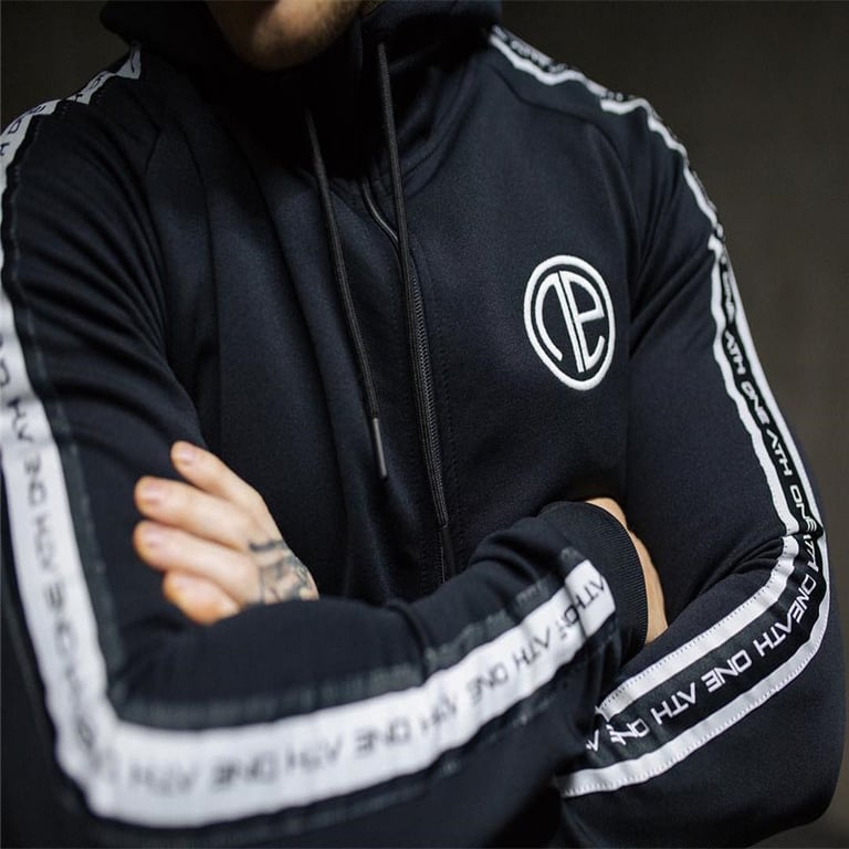 This set consists of a hoodie with stripes on both sleeves and trousers.