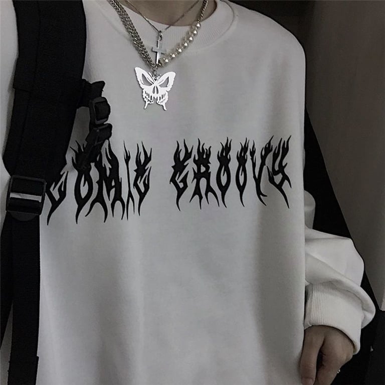 Men's oversized sweatshirt without a hood featuring a text and wing print.