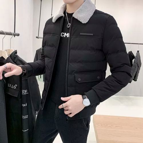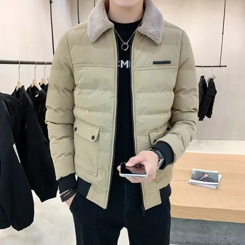 Men's down jacket with a warm collar.