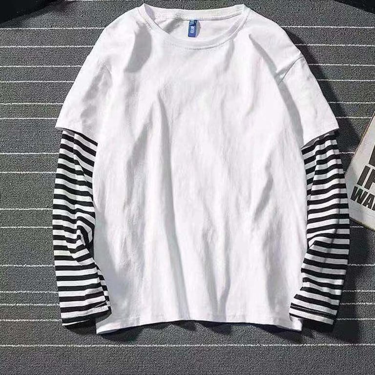 Beautiful men's white t-shirt without a pattern, featuring striped sleeves, suitable for both social occasions and sports.