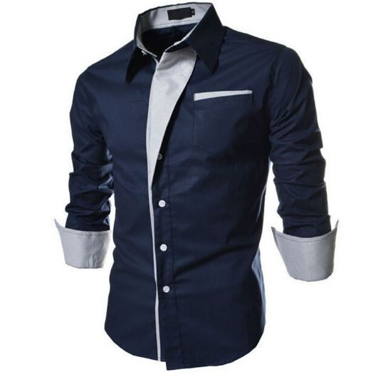 Men's modern shirt with interesting details in blue.