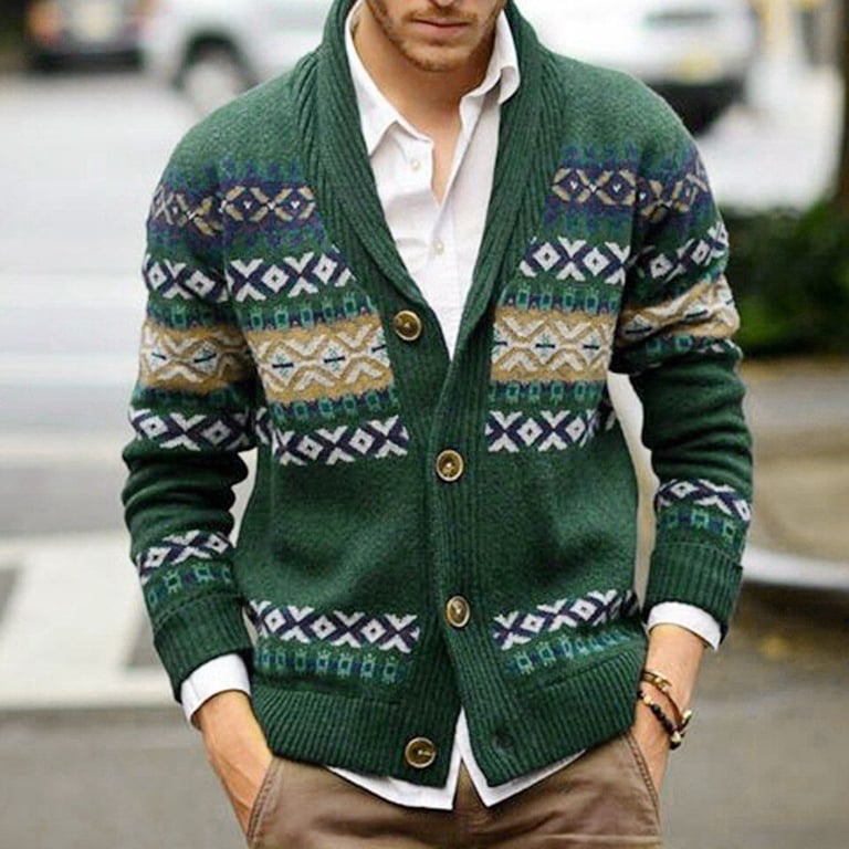 Stay warm without losing style with this luxurious knitted sweater available in various designs.