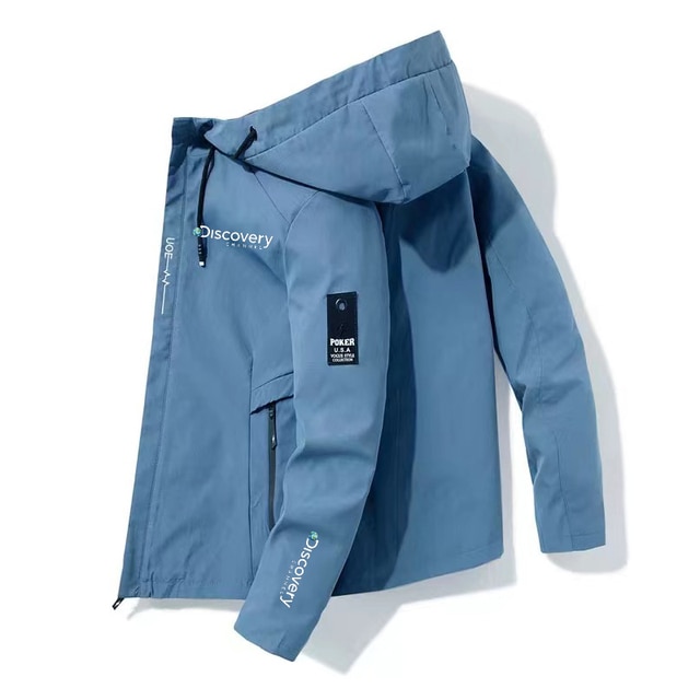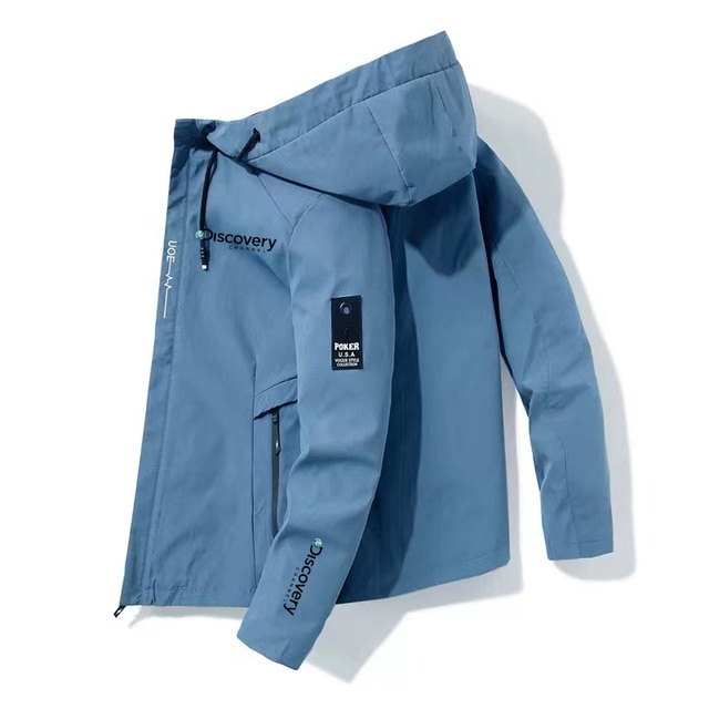 A modern warm outdoor jacket that is great due to its wind resistance.
