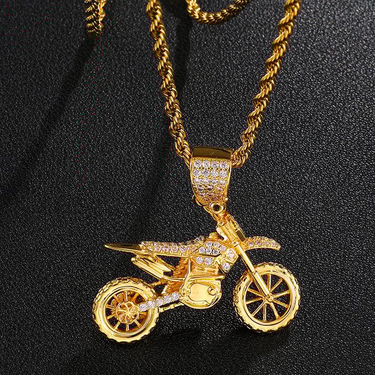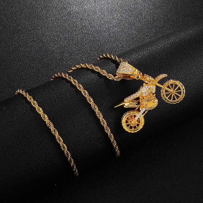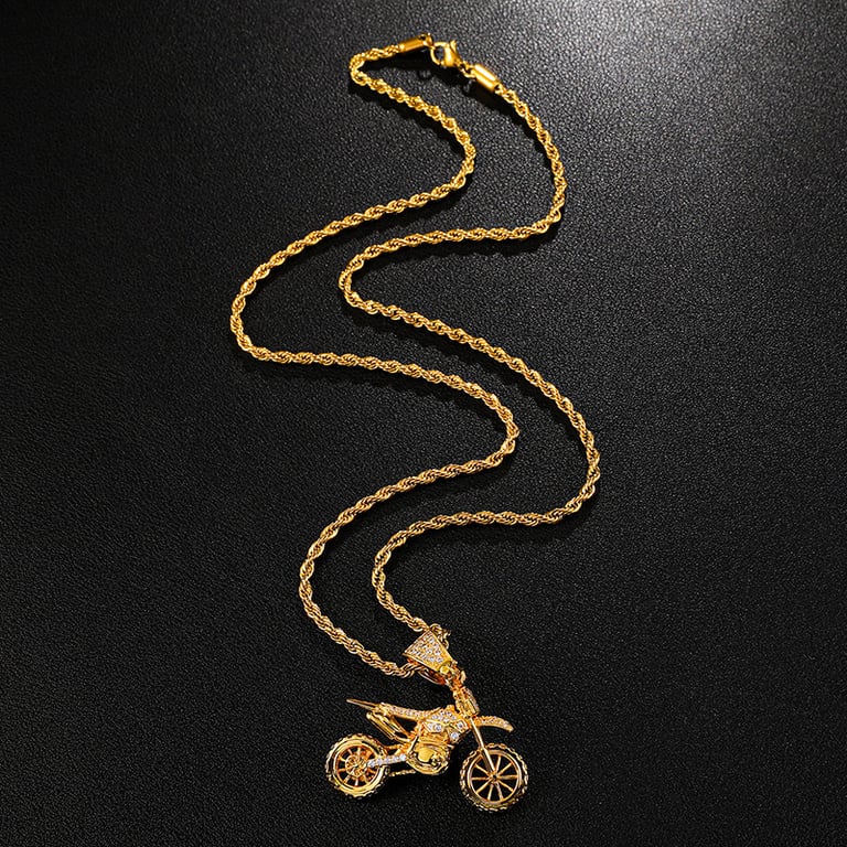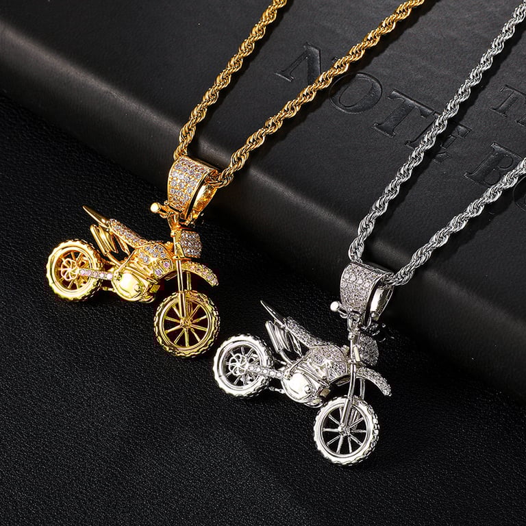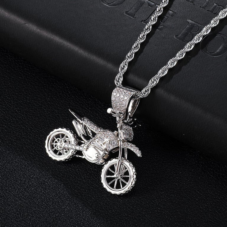 Men's Motorcycle Motocross Necklace with Zirconia