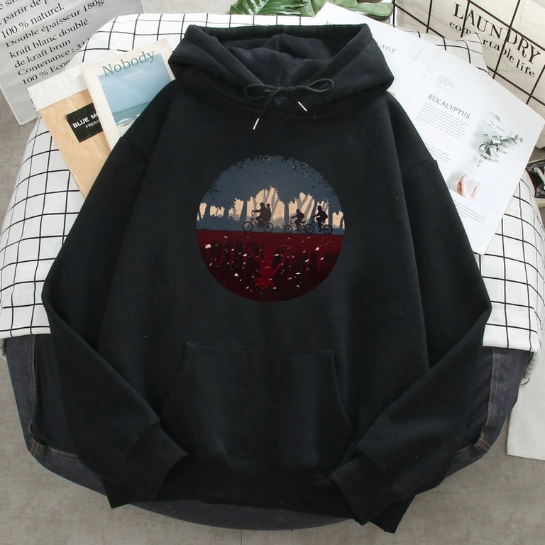 • With long sleeves, a hood, a kangaroo pocket, and a cool print of the popular Stranger Things.