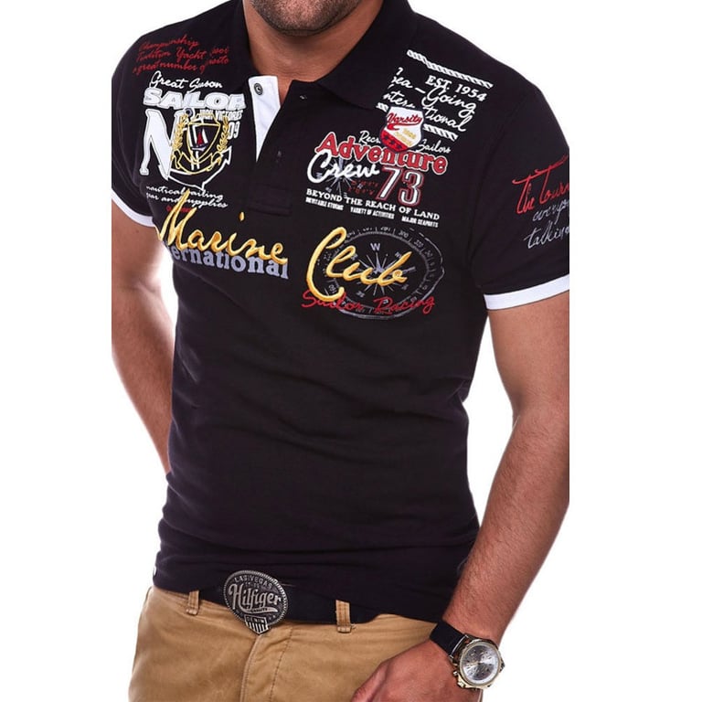 Men's short-sleeved shirt. The shirt features a collar and button fastening. Colourful print with text. Available in multiple variants.