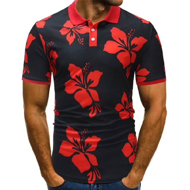 Men's short-sleeve t-shirt with a fitted cut. Collar with buttons and a colourful floral print. Available in two variants.