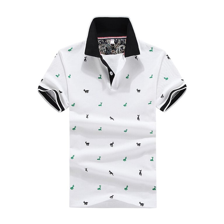 Men's polo shirt with a colourful pattern. The shirt has a fitted cut. Short sleeves. Collar with buttons. Available in multiple colour options.
