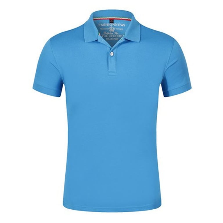 Men's polo shirt with a collar and short sleeves. Button-up neckline. Solid colour. Available in multiple variants.