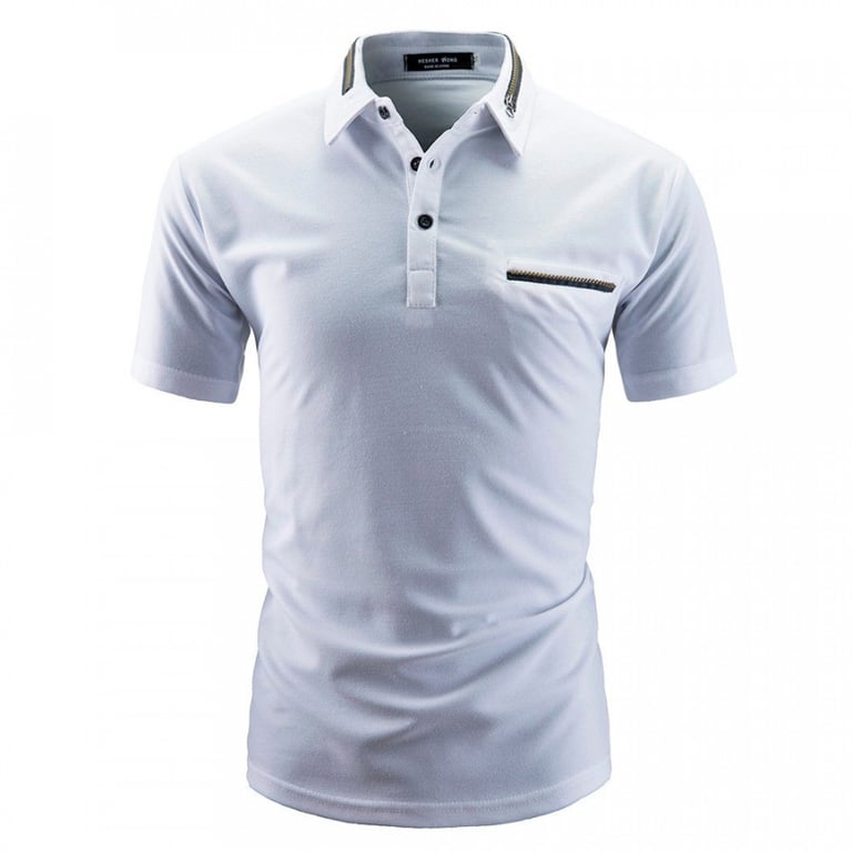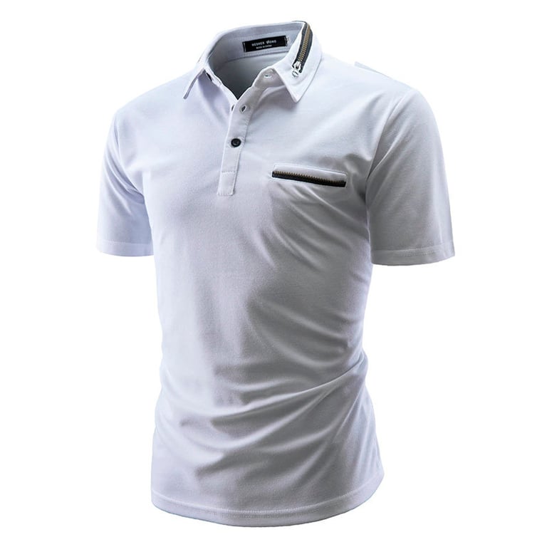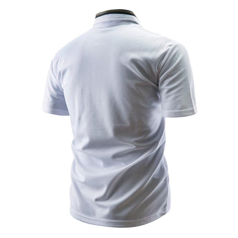 Men's short-sleeved t-shirt with a fitted straight cut. The t-shirt features a collar and buttons. Available in multiple colour options.
