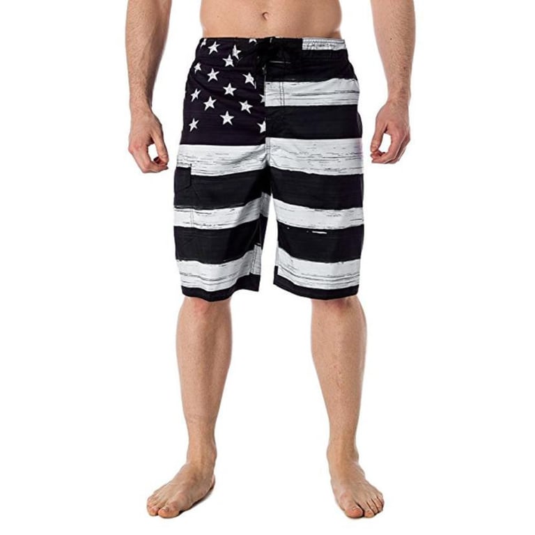 Men's shorts with an elastic waistband and drawstrings. The shorts feature a colourful print with an American flag motif. Available in two variants.