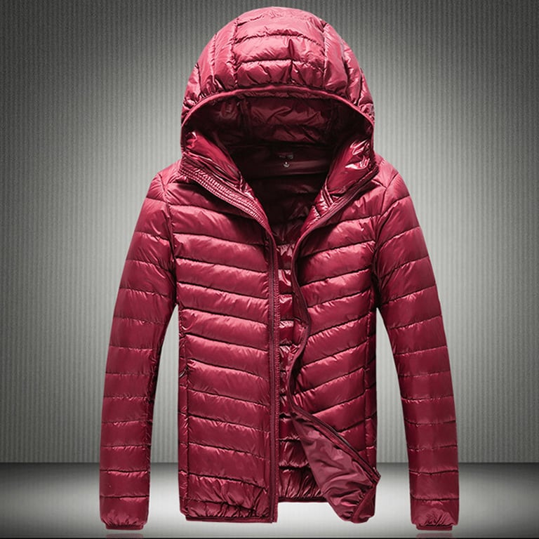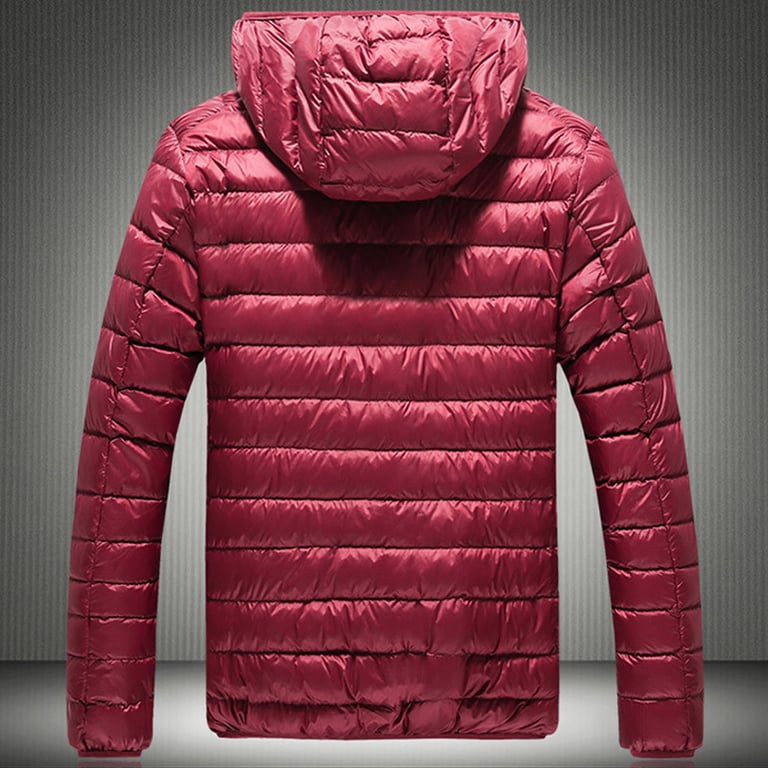 Men's transitional quilted jacket for spring/autumn. The jacket features a zip fastening and a collar with a hood. Straight cut. Shiny smooth material. Two side zip pockets. Available in several colours.