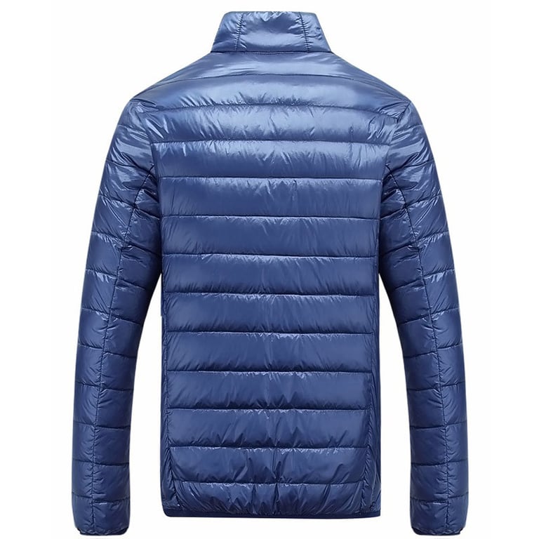 Men's lightweight quilted jacket. The jacket features a high collar and a zip fastening. Two side zip pockets. Shiny surface. Available in three colours.