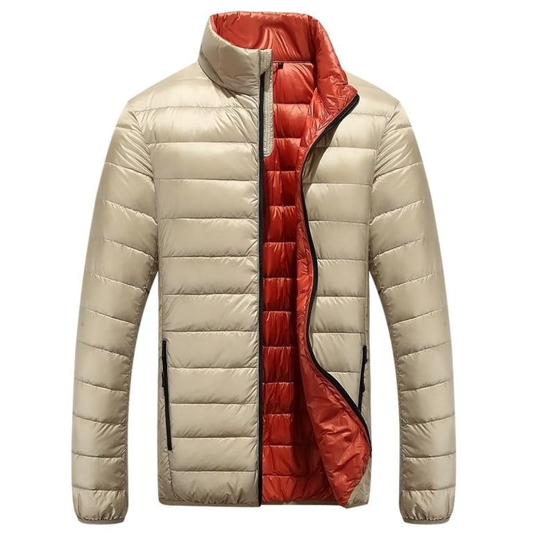 Men's lightweight quilted jacket. The jacket features a high collar and a zip fastening. Two side zip pockets. Glossy surface. Available in three colours.