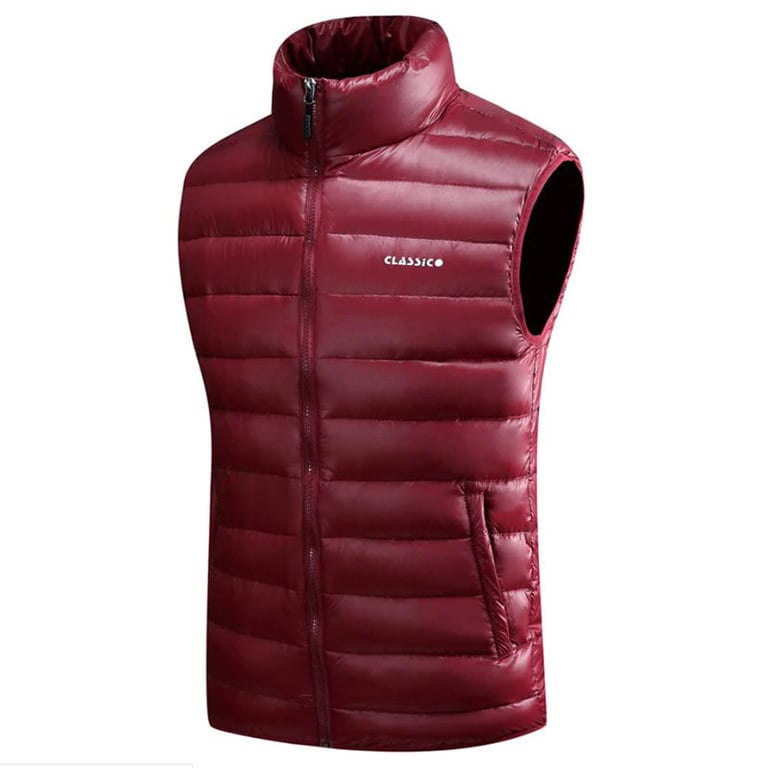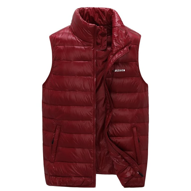 Men's lightweight vest with quilting and a high collar. Zip fastening. Side pockets. Available in two colour options.