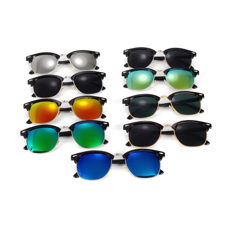 Men's retro style sunglasses. Plastic frames. Available in multiple colour options.