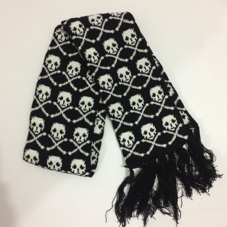 Winter scarf in black with a skull print.