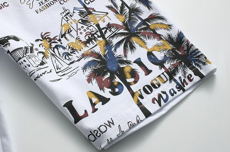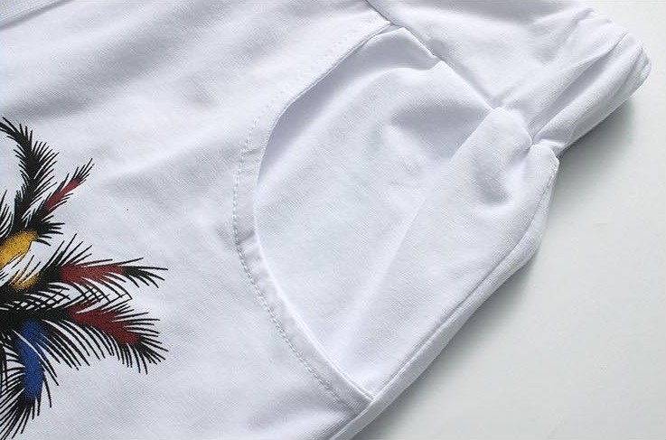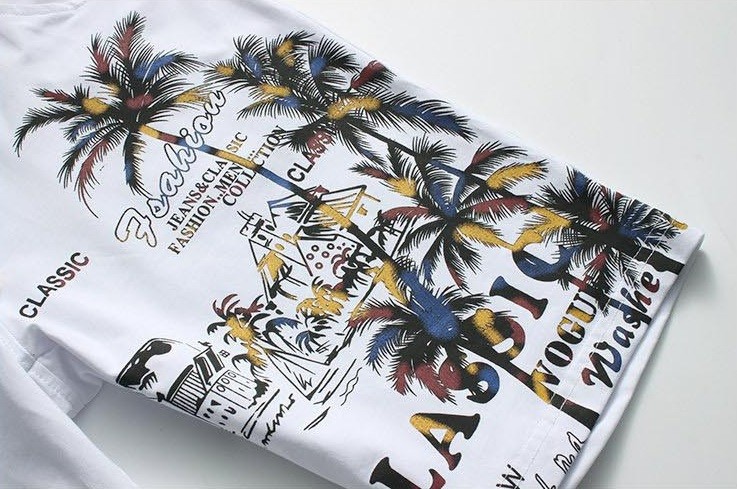 Dress stylishly with this palm print set, which includes a t-shirt and shorts.
