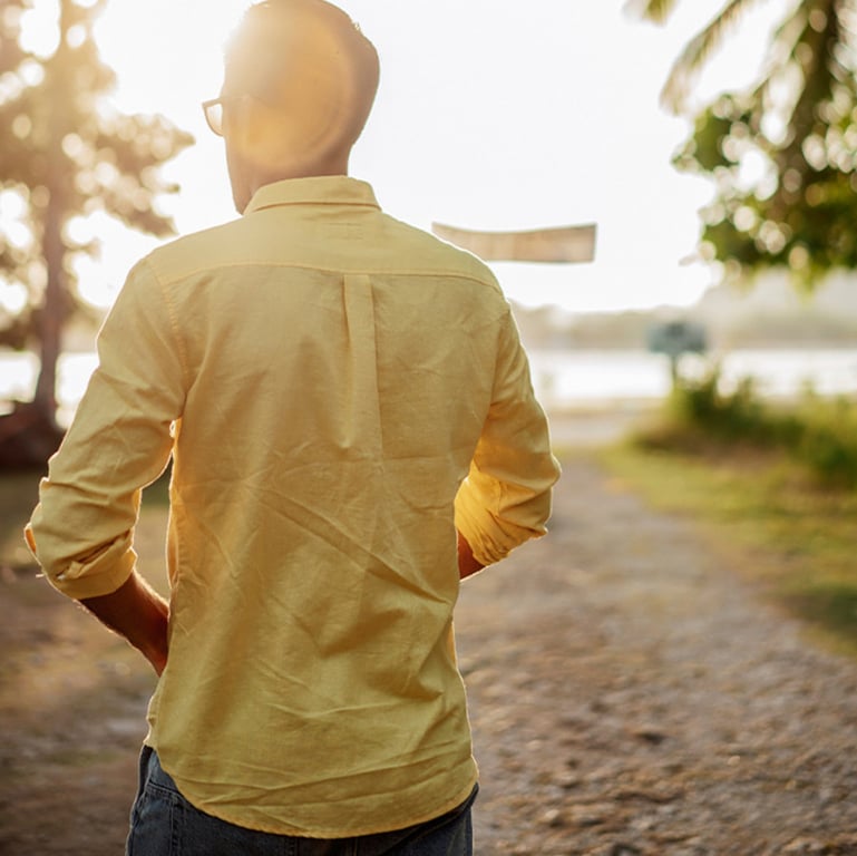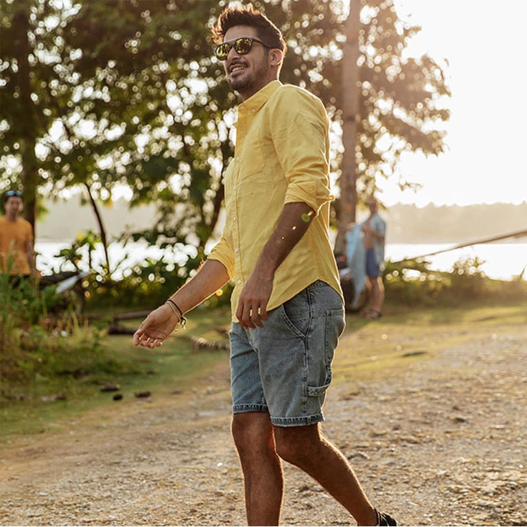 Men's lightweight shirt with a collar and long sleeves. Loose fit with button fastening. Available in multiple colour options.