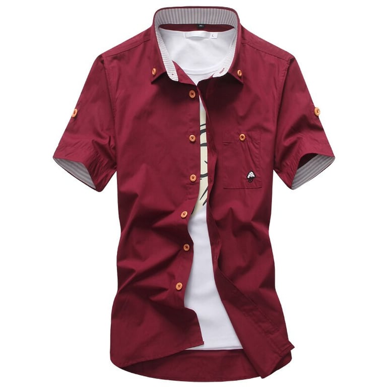 Men's short-sleeved shirt with a collar neckline. Fitted cut with button fastening and a chest pocket. Available in multiple colour options.