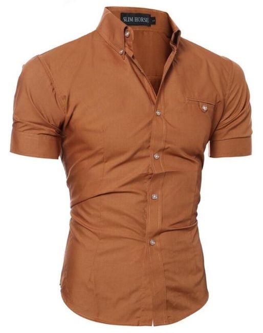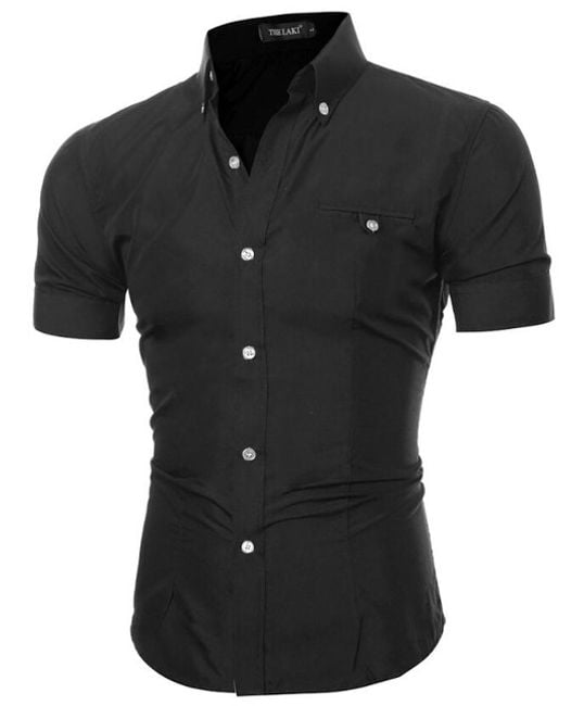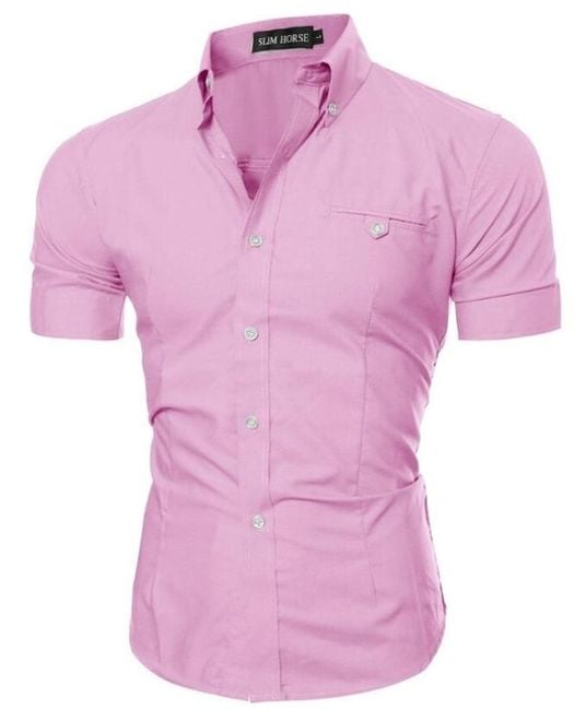 Stylish men's short-sleeved shirt features button fastening. Choose from 8 colours.