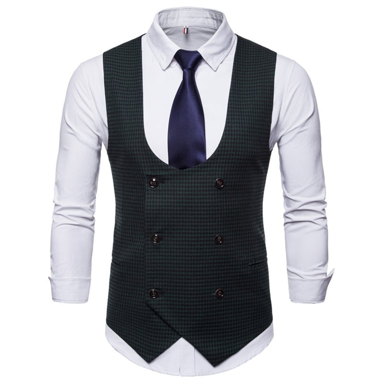 Men's long-sleeved shirt with a collar and tie. The shirt is complemented by a waistcoat with a checked pattern and double-breasted fastening. Fitted cut. Available in multiple colour variants.