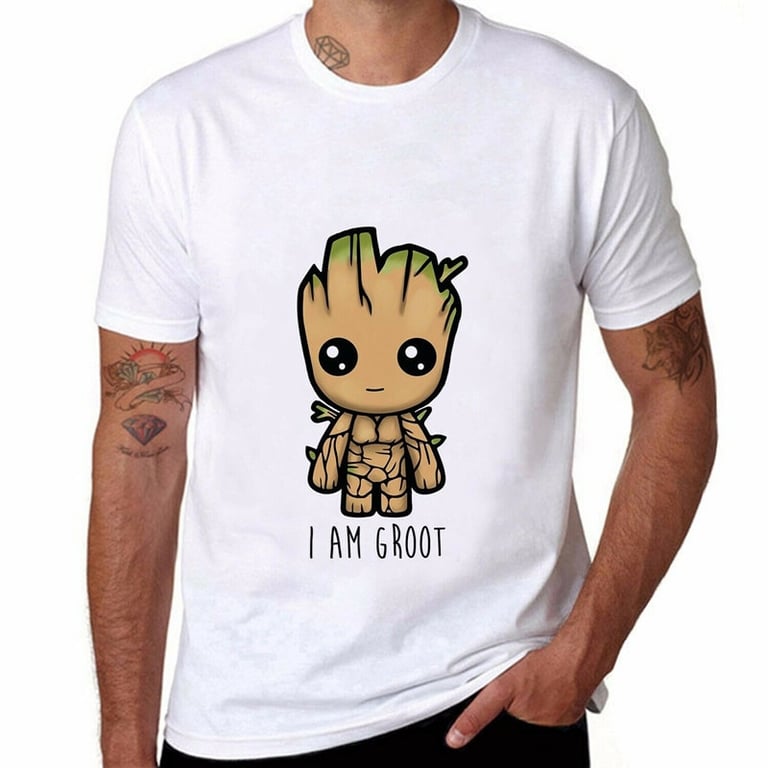 Cute men's short sleeve t-shirt featuring the beloved Groot. Suitable as a gift.