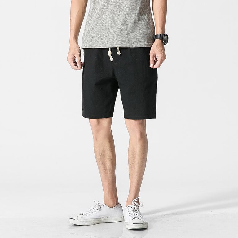 Men's bermuda shorts. The shorts feature an elastic waistband with drawstrings. Lightweight material. Two side pockets and one back pocket. Available in several colour options.