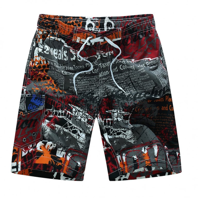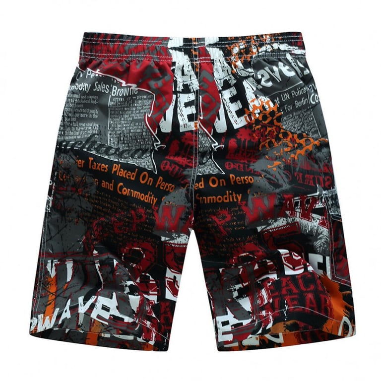 Men's shorts with an elastic waistband and drawstrings for adjustment. Printed with a colourful design. Available in two variants.
